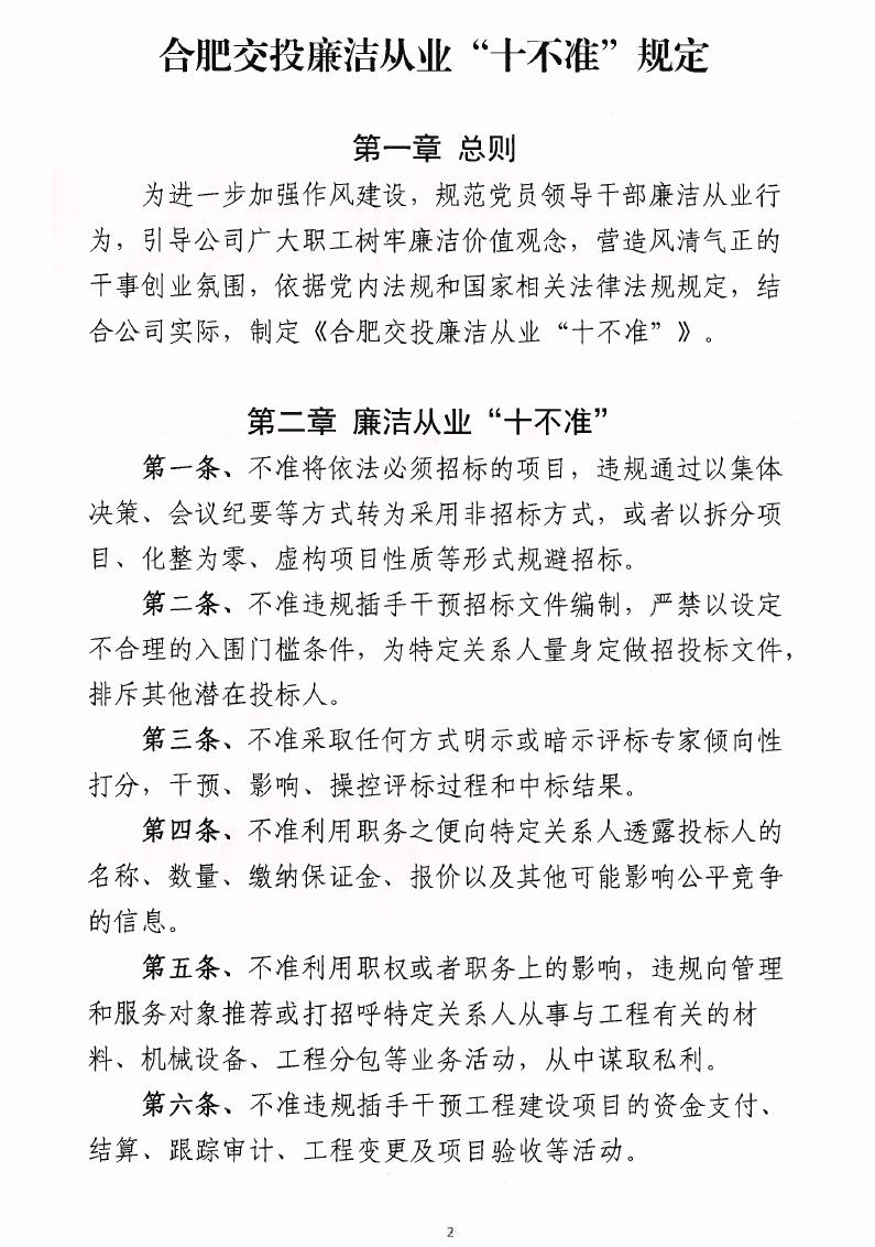 合肥交投廉潔從業(yè)“十不準(zhǔn)”