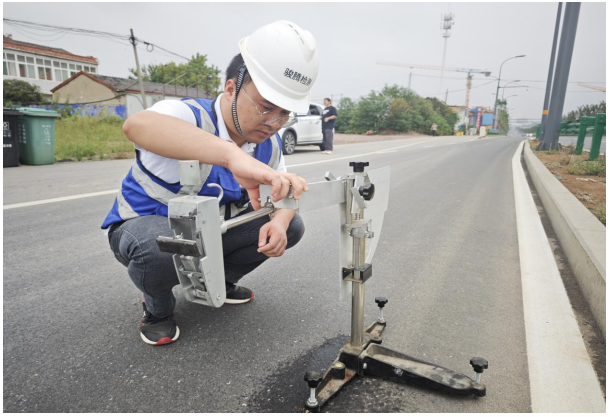 鏡頭流轉(zhuǎn),G312項(xiàng)目上的檢測(cè)員汪亮文正全神貫注地進(jìn)行瀝青路面摩擦系數(shù)檢測(cè),科學(xué)測(cè)量用數(shù)據(jù)助力安全坦途。