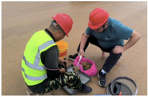 淮桐1標(biāo)現(xiàn)場(chǎng)檢測(cè)員正在進(jìn)行壓實(shí)度檢測(cè)。