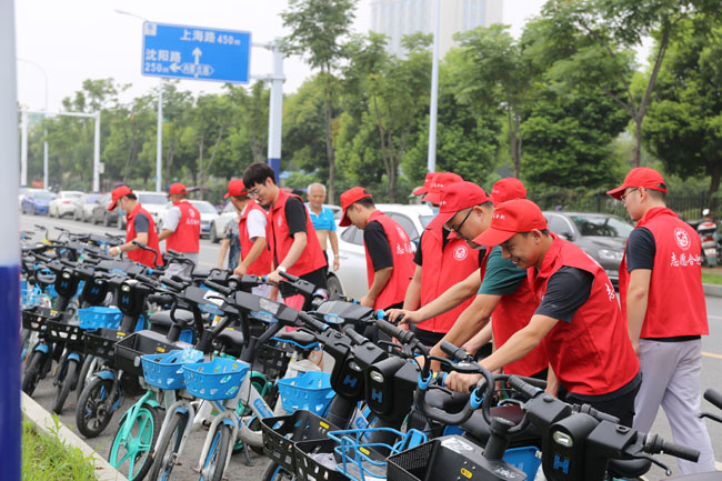 首頁 > 黨群廉政 > 詳細(xì)新聞為認(rèn)真貫徹“文明健康志愿同行”志愿服務(wù)活動,7月29日上午,合肥路橋組織志愿者開展文明創(chuàng)建活動,參與文明交通志愿服務(wù),對公司北門西寧路上的共享單車進(jìn)行合理擺放。